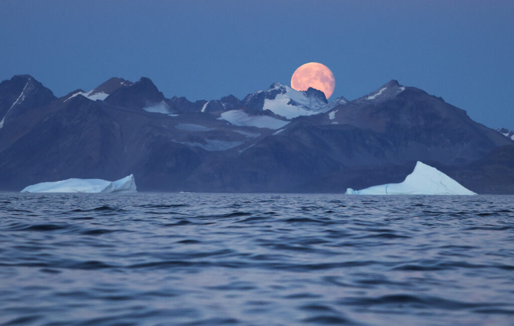 Im Anschluss setzen wir unsere Bootsfahrt nach Tasiilaq, der größten Ortschaft an der Ostküste Grönlands fort. Etwa 1.758 Menschen leben hier, was rund der Hälfte der Bevölkerung dieser Region entspricht. Nach dem Einchecken in die Unterkunft lernen wir das lokale Team kennen, welches uns in den kommenden Tagen sowohl bei den Unternehmungen an Land, als auch auf dem Wasser unterstützen wird. Wenn sich die blaue Stunde über den Ort legt, eröffnet sich ein einzigartiges Fotopanorama. Das sanfte Licht des Sonnenuntergangs hüllt die farbenfrohen Holzhäuser am Fjord in eine märchenhafte Stimmung. Hinter den Häusern ragen schroffe Berge empor, während vor uns die Eisberge im Meer treiben.