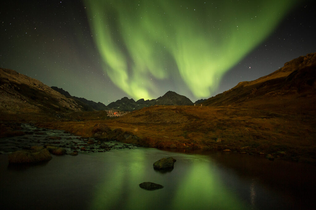 Die Polarlichter sind in Grönland saisonal gut sichtbar. Ihre Intensität hängt von der Sonnenaktivität ab, aber bei klaren Nächten und etwas Glück lassen sich beeindruckende Aurora-Szenen fotografieren. Ende August wird es schon abends dunkel genug, um Polarlichter zu sehen, auch wenn die Nächte noch vergleichsweise kurz sind. Da die Region sehr abgelegen ist, gibt es praktisch keine Lichtverschmutzung, was ideale Bedingungen für die Aurora-Beobachtung schafft. Wolken oder Schneeschauer können die Sicht verdecken. Ende August ist das Wetter wechselhaft, daher werden wir mehrere Abende einplanen, um gute Chancen zu haben.