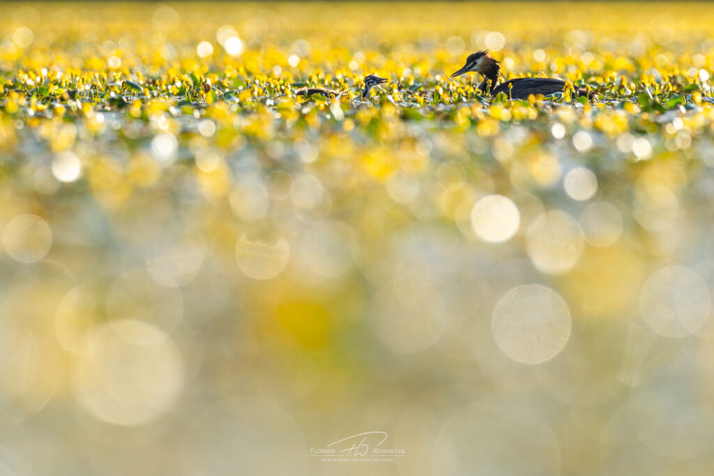 Diese Fototour ist primär der Fotografie aus dem Floating Hide gewidmet. Die Arbeit mit dem schwimmenden Versteck bietet die Möglichkeit für ein ganz besonderes Naturerlebnis. Bedächtig und respektvoll gleiten wir durchs Wasser und begenen den Tieren auf Augenhöhe in ihrem Element. Die Perspektive knapp über der Wasseroberfläche gibt uns die Chance auf sehr intime Bilder mit wunderschönem Bokeh. Jede Sitzung im Wasser ist anders, die Hintergünde wechseln, wir können mit dem Licht und gegen das Licht fotografieren, was wiederum bedeutet, dass jeder Teilnehmer sein eigenen ganz speziellen Bilder machen kann. Wir werden nie alle exakt die selben Bilder haben. Durch unsere schwimmende Tarnung kommen wir sehr nahe an die Tiere heran und werden nicht als Gefahr wahr genommen. Die blühenden Wasserpflanzen rahmen die ganze Szenerie tzusätzlich noch perfekt ein. Die Vorder- und Hintergrundmöglichkeiten sind schier endlos.